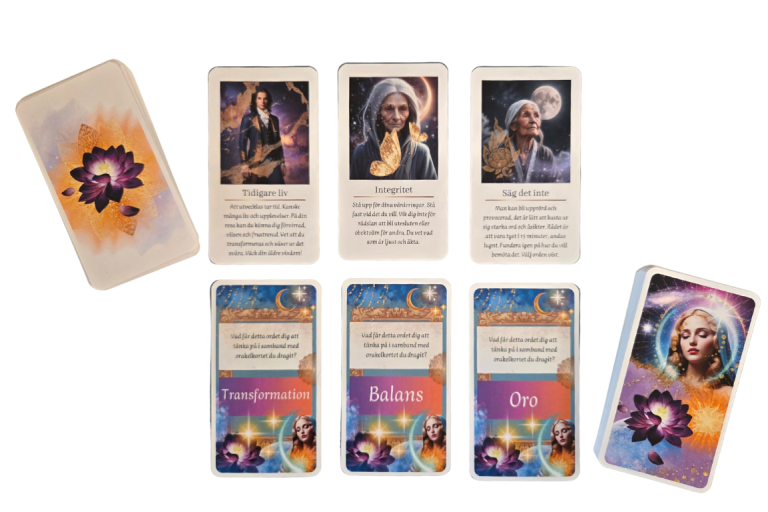 Jag brukar även dra kort inför vissa behandlingar och be kunden vända på dem innan dem går. Ofta stämmer korten väldigt väl med samtal och upplevelse under behandling. Men här är det också väldigt tydligt att vissa lekar leverar budskapen bättre än andra. Längst ner har jag lagt in 3 svenska kortskapare som jag tycker är riktigt bra.